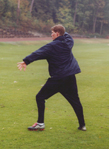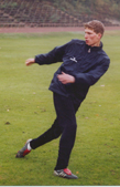 Christian geworfen. Holt mit dem rechten Bein leicht Schwung,