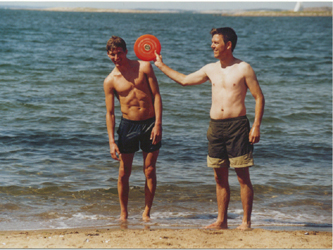 Eine Runde Frisbee am Strand. Rechts neben Christian Ingo Röder, ein Kumpel aus Darmstadt, der Sportstudent ist und mit Christian nach seiner Verletzung im Jahr 2002 Koordinationstraining gemacht hat. Er war in Norwegen zu Besuch.