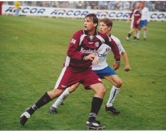 Wo ist bloß der Ball? Höchste Konzentration vor dem Zweikampf gegen einen Siegener Stürmer.