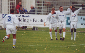 Nach Christians Führungstreffer gegen den FCK ist der Jubel bei ihm und seinen Mitspielern entsprechend groß. Neben ihm T.Leifermann und W.Anane.
