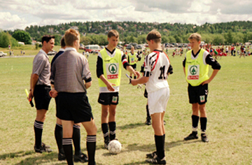 Bei der Platzwahl beim Spiel gegen Vestsiden Askoy im Rahmen des Norway Cups 1997. Das Spiel hat seine Mannschaft übrigens mit 2:1 gewonnen.