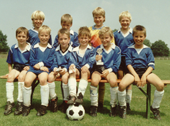 Nach einem Turniersieg im Sommer 1990 bei Christians Heimatverein SG Arheilgen. Er ist in der unteren Reihe der zweite Spieler von rechts.