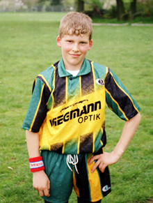 Das ist Christian in der D1-Jugend am Ende der Saison 94 / 95. An seinem Schweißband erkennt man seinen Lieblingsverein: Bayern München.