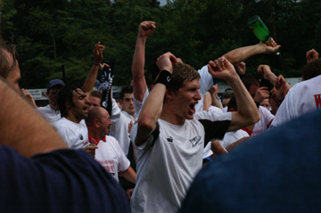 Nach der Meisterschaft am 02.06.2007 war nur noch feiern angesagt. Hier ein Bild aus dem Mannschaftskreis unmittelbar vor der Übergabe der Meisterschale.