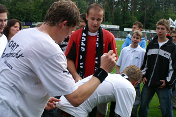 Nach der Meisterschaft waren die Autogramme aller Sandhäuser Spieler sehr begehrt. So oft wie an diesem Abend musste Christian seinen Namenszug noch nie auf T-Shirts und Trikots verewigen.